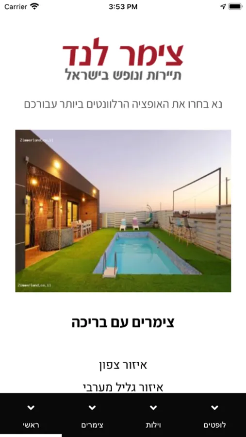 צימר לנד - אפליקציית הצימרים הוותיקה והמובילה בישראל