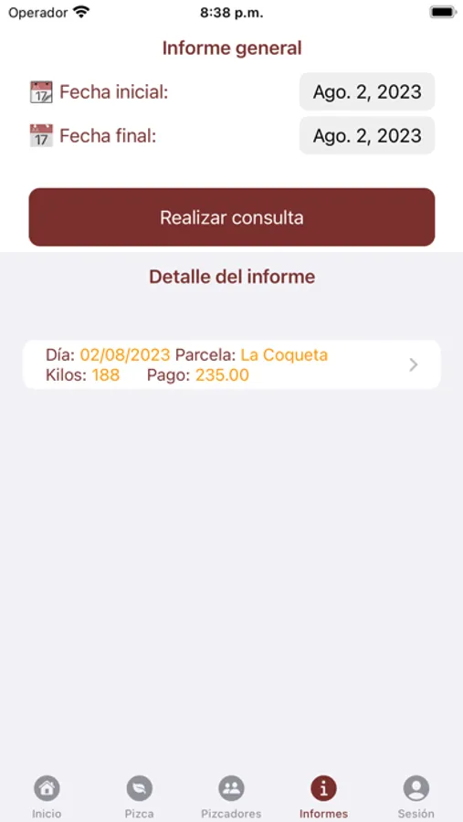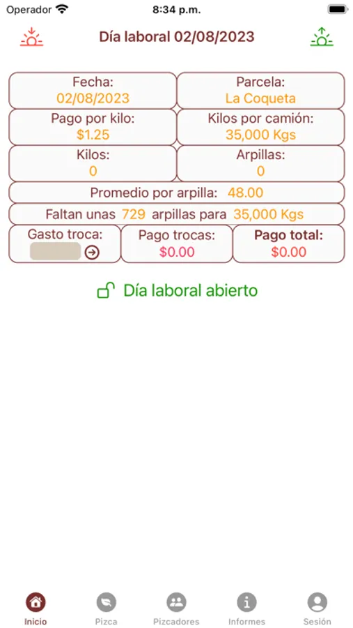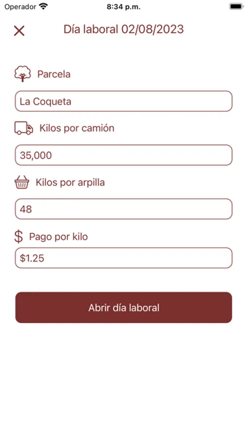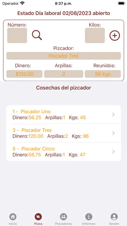 Llevar el control de la cosecha del día y a la vez ir calculando el pago diario de los trabajadores