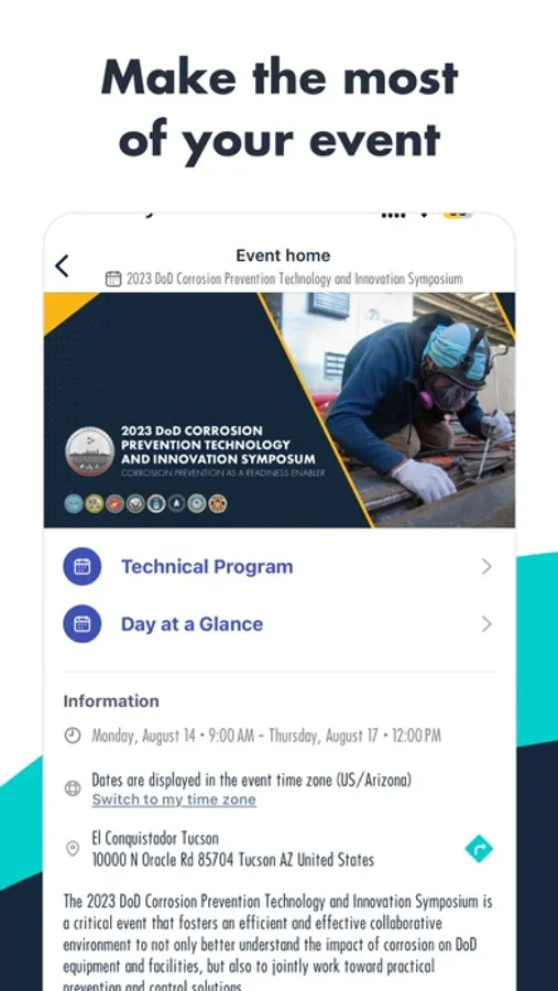 The DOD Corrosion Symposium App is the official app created for DoD Corrosion Prevention Technology and Innovation Symposium, the only DoD conference solely focused on effects, mitigation, and prevention of corrosion on weapon systems, equipment, and facilities.
