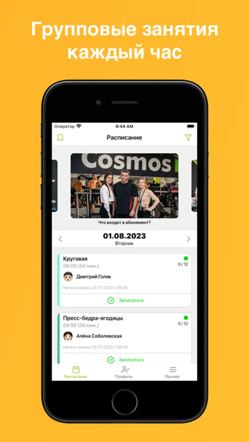 Получайте информацию о своих записях на тренировки, акциях, бонусах и супер-предложениях сети фитнес-клубов CosmosFit.