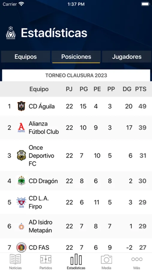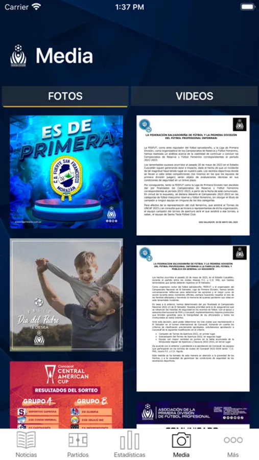 APP Oficial de La Primera División de Fútbol Profesional de El Salvador.