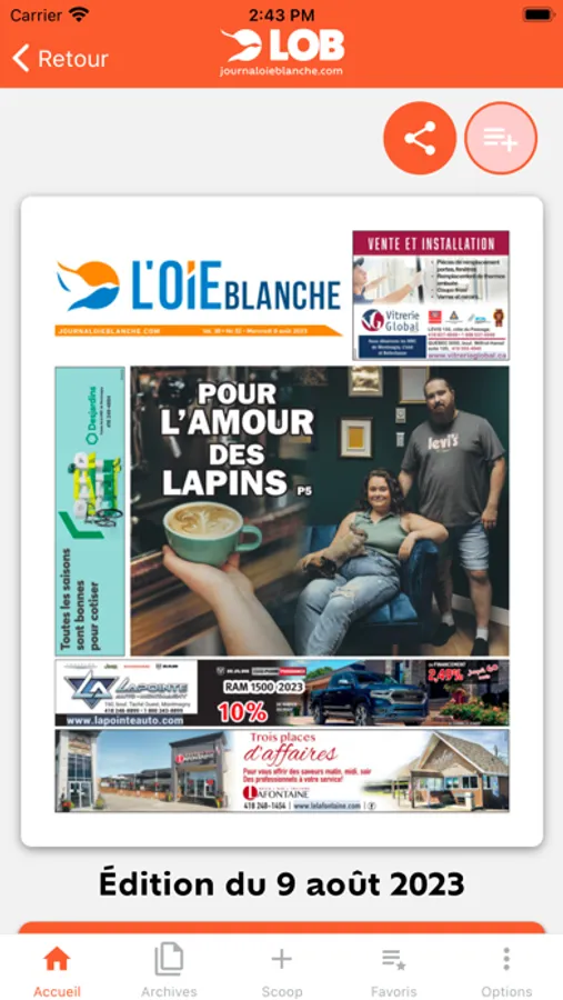 L'application gratuite L’Oie Blanche vous branche à l'information de la Côte-du-Sud. Recevez les dernières nouvelles locales et consultez les éditions à tout moment!