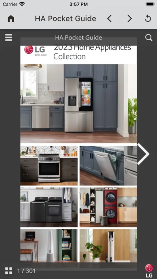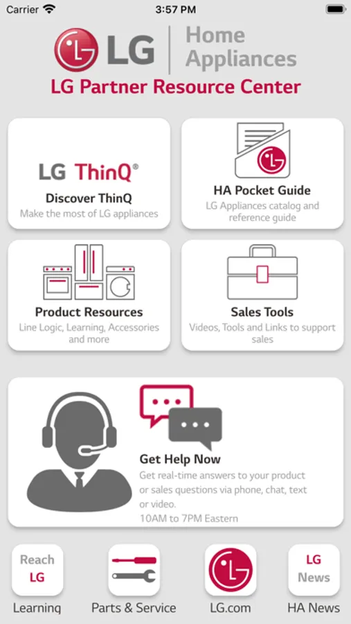 The app provides access to the latest LG home appliance information, links for support and parts and service information, real time help, home appliance news, and innovations including LG ThinQ for using wifi with your appliances. The user interface is designed to be easy-to-use and intuitive, making it easy to navigate and access product and support information.