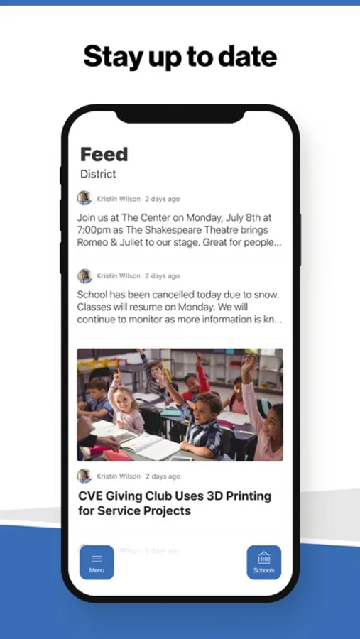 In the Live Feed is where you'll find updates from the administration about what's going on in the district right now. Whether that's celebrating a student's success, or reminding you about an upcoming deadline.
