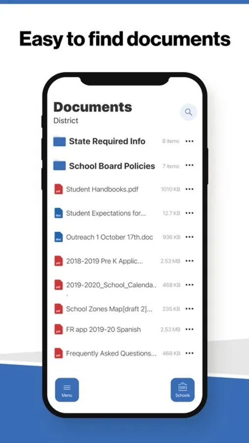 The event section shows a list of events throughout the district. Users can add an event to their calendar to share the event with friends and family with one tap.