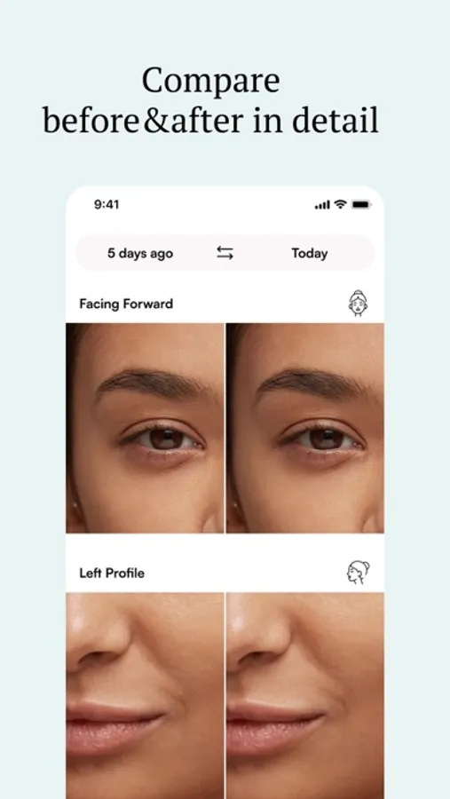 Compare your photos from all angles in detail and see the subtle changes and improvements your skin is going through.