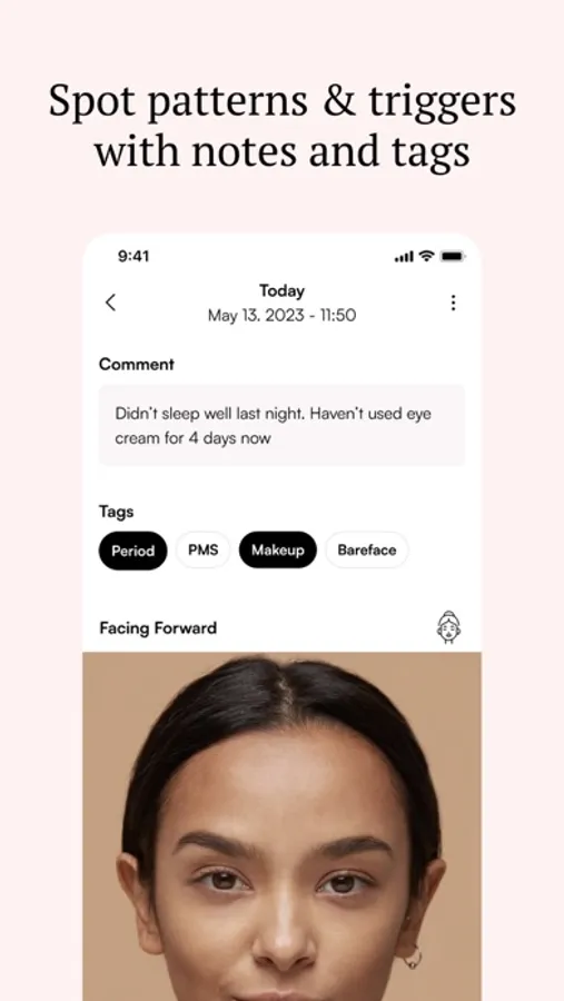 Make a snapshot of your skin’s condition from all angles in just a few seconds. With each photo reflecting the impact of your skincare choices and habits, witness the shifts and changes as your skin blossoms into its full potential.