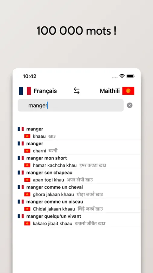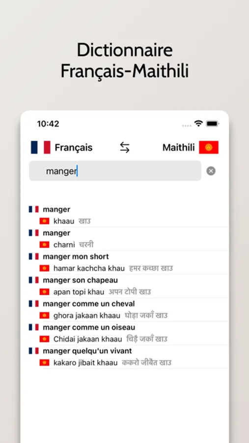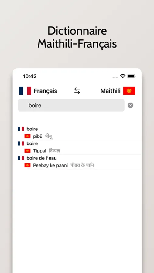 - Possibilité de rechercher à partir de mots en Français ou en Maithili