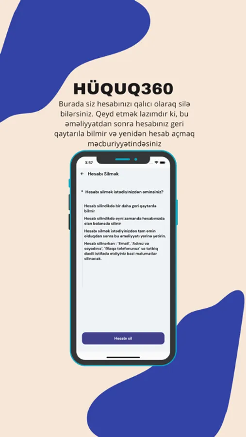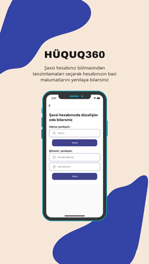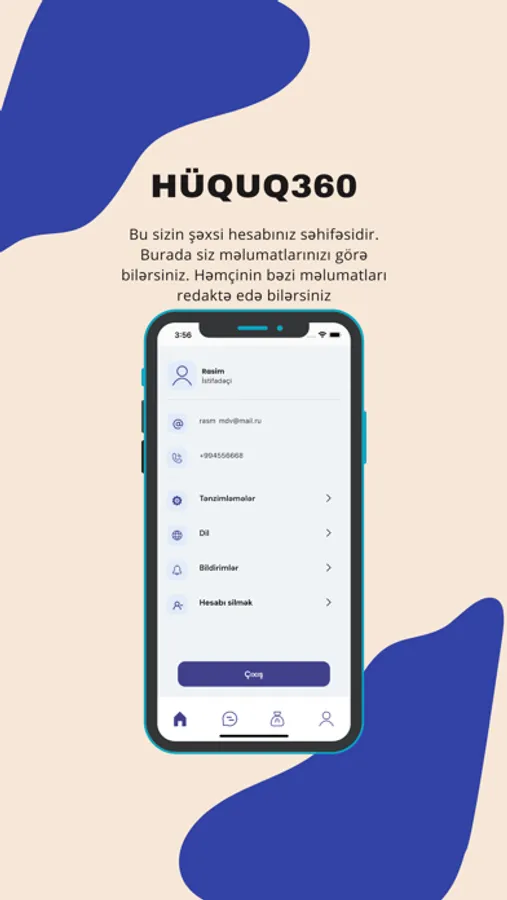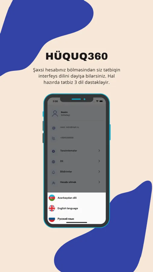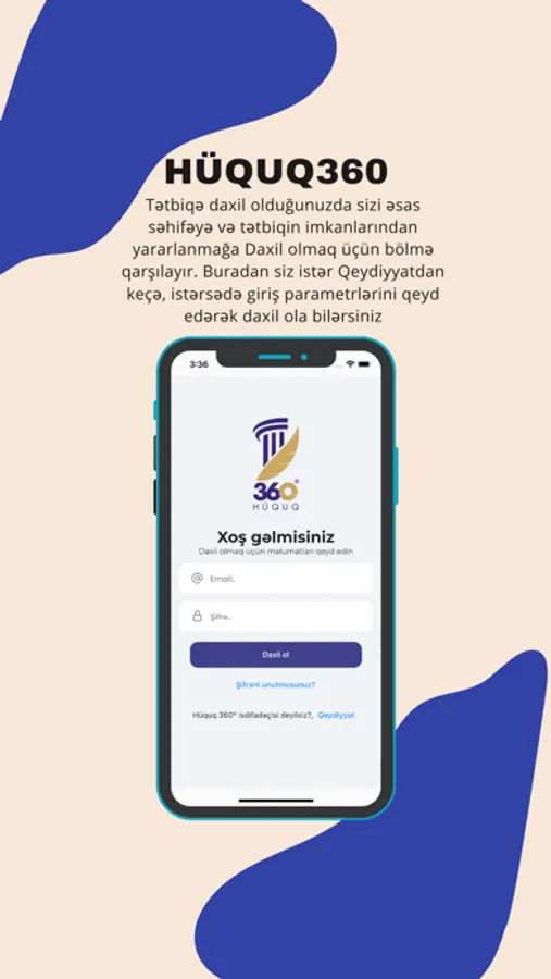 • Daxil olmaq və ya Qeydiyyat : Hüquq360 mobil tətbiqində qeydiyyatdan keçərək şəxsi hesab yaratmaq çox sadədir