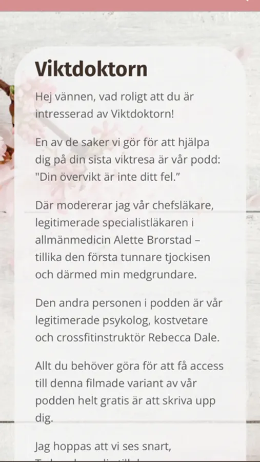 Hej vännen, vad roligt att du är intresserad av Viktdoktorn!