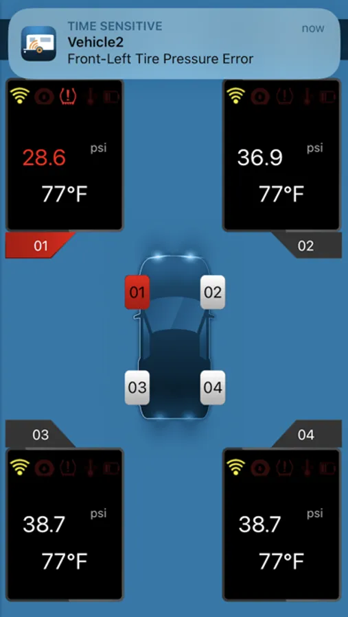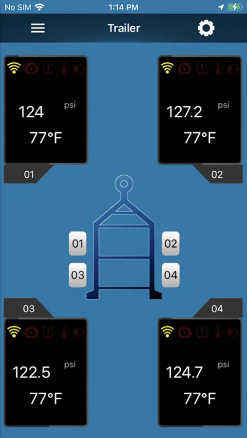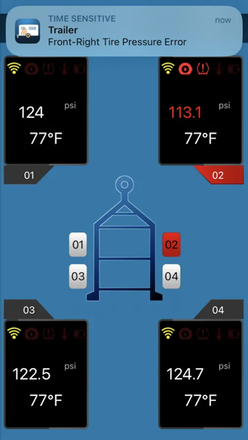 2. Real-time check of tire pressures and tire’s internal temperatures, alerting the operator with both visual and audible alerts if one or more tires’ pressures or temperatures are outside of the approved preset range.
