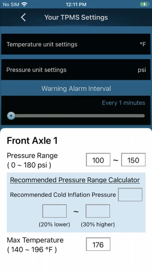 6. Allows user to set Tire Pressure & Tire Temperature limits.