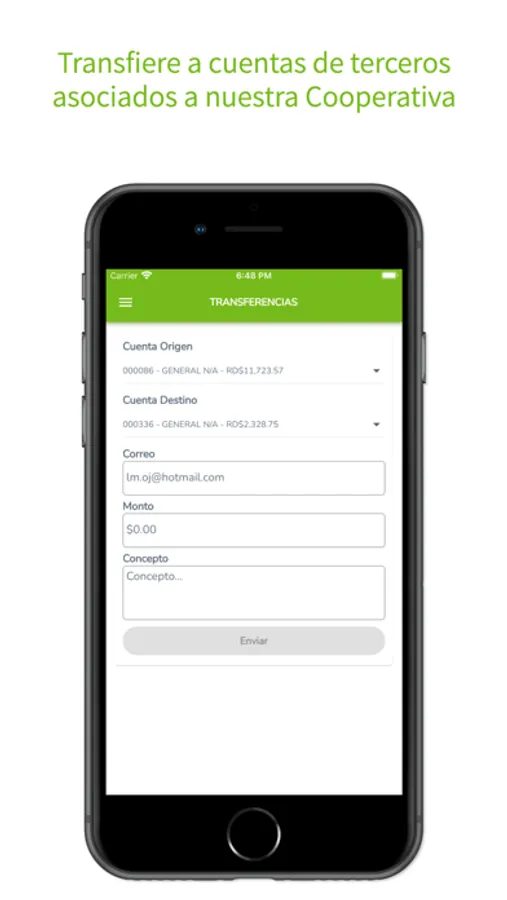 - Transferir a cuentas de terceros, asociados a nuestra Cooperativa.