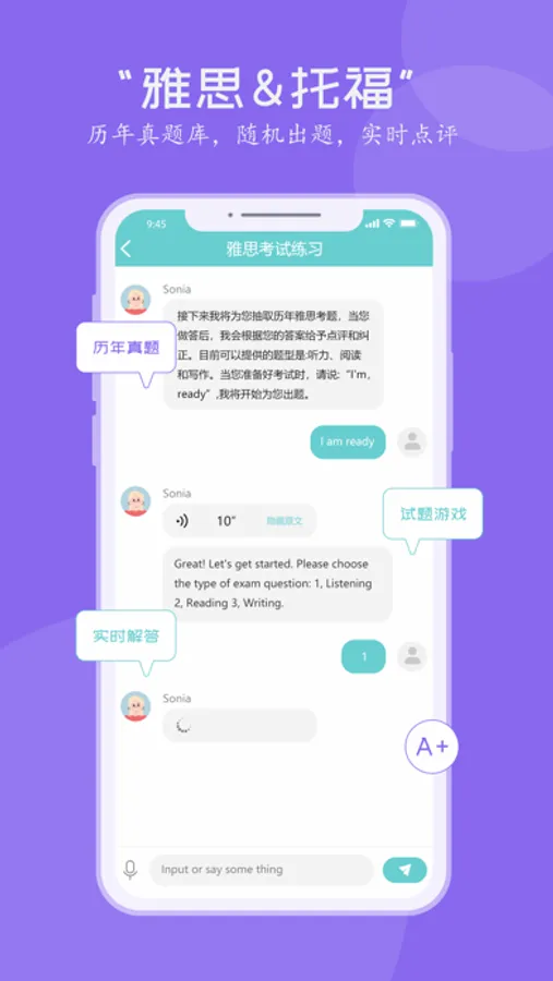 6、AI英语保姆还提供了雅思和托福考试的试题训练,以助您在考试中取得最好的成绩。