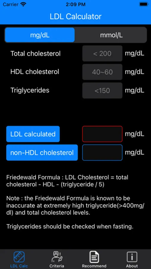 Easy to calculate LDL by total cholesterol, HDL cholesterol, Triglycerides