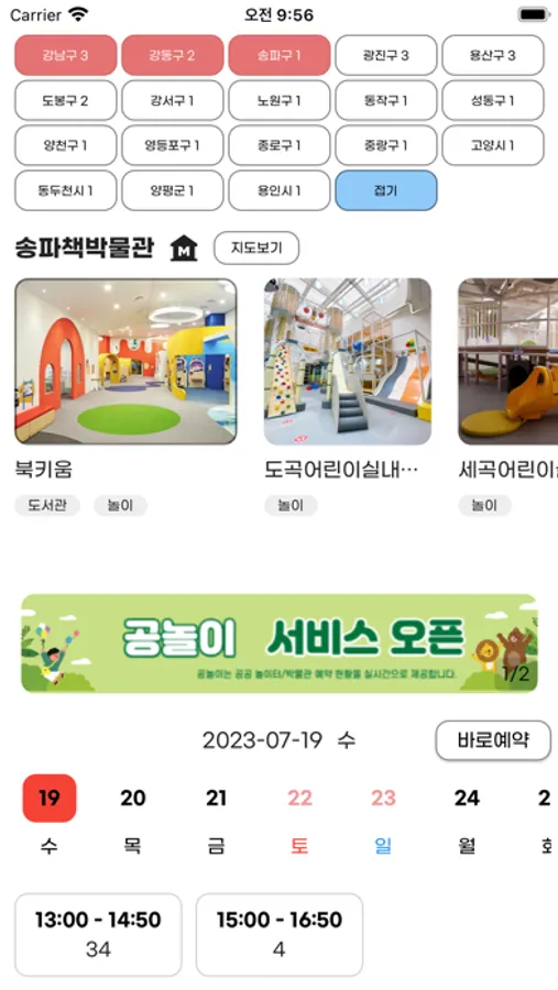 공놀이는 다양한 공공기관에서 운영하는 어린이들을 위한 놀이터,박물관 등의 시설 예약정보를 통합으로 조회할 수 있는 서비스입니다.