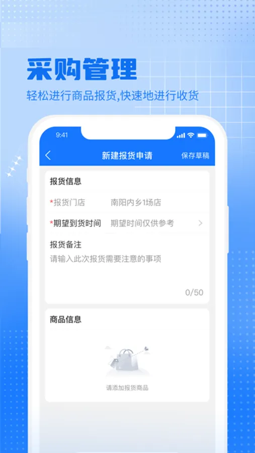 ● 门店报货:通过我们的应用程序,门店可以轻松进行商品报货。通过扫描商品条码、输入数量和供应商信息,您可以创建报货单可直接同步仓库或将其直接发送给供应商。这样,您可以确保及时补充货物,并避免缺货问题。