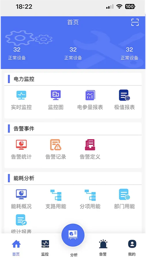 掌能宝,可在线查看电表实时用能数据、用能监控、用能报表、告警信息等。