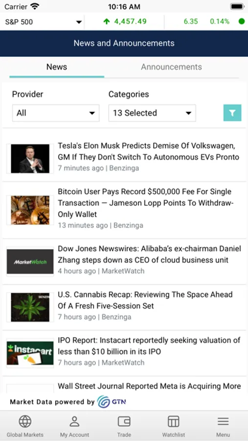 Alkhabeer Global platform allows our clients to monitor live prices and create personal watch lists of stocks, Exchange Traded Funds (ETFs) and Options. It also allows our customers to execute each of their orders in one or more exchange around the world at the best executions prices available. Orders may be submitted online, through the smartphone application, or by calling Alkhabeer's trading desk.
