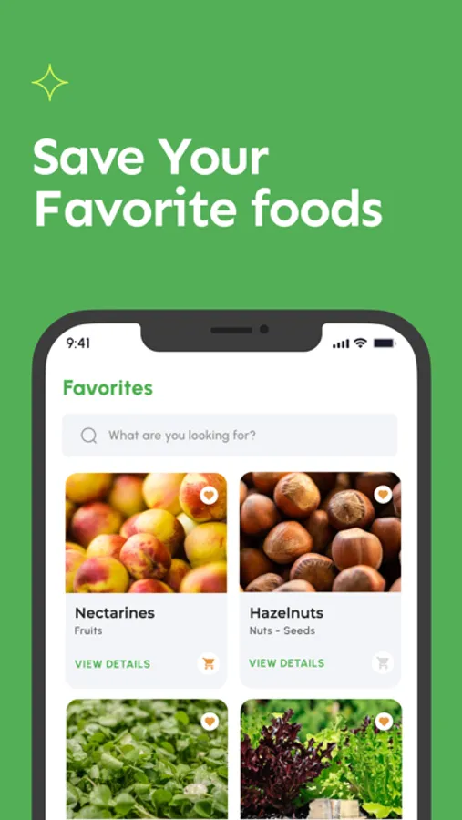 Navigate with Ease: Our Home screen allows for quick searches of specific foods or ingredients. You can also select a food category such as "Fruits" to view various options. Make healthy choices with just a few taps!
