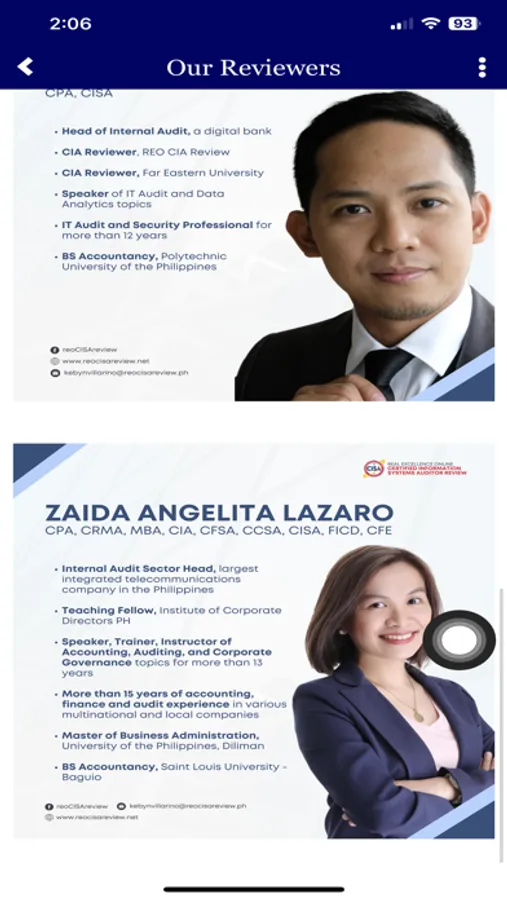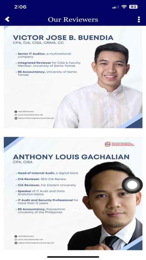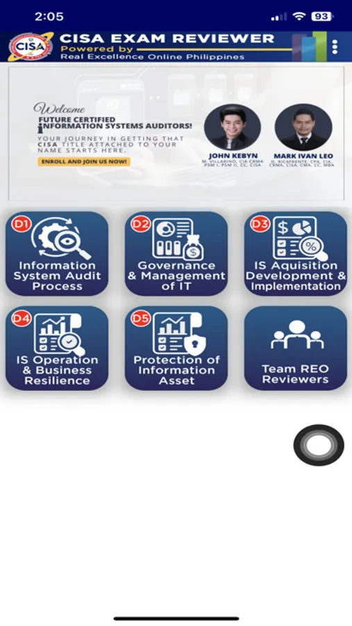 REO CISA Review app utilizes a learning management system to help the users prepare for the global examination of Certified Information Systems Auditor (CISA), a professional designation offered by the Information Systems Audit and Control Association (ISACA).