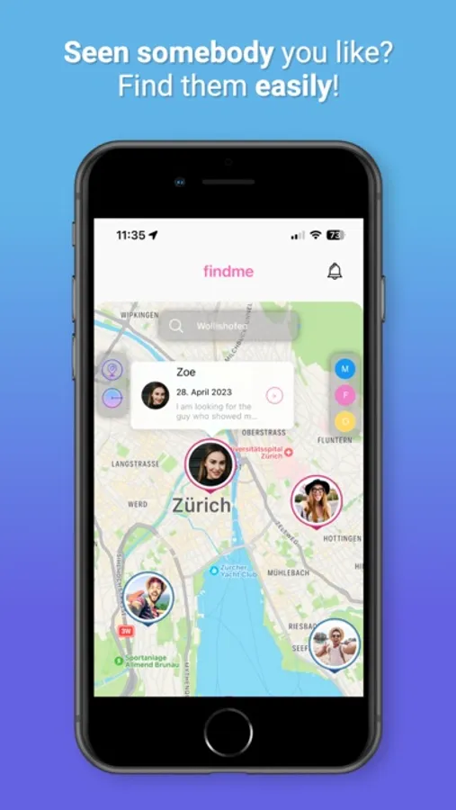 Seen somebody you like, but haven't exchanged contact details? Don't worry, FindMe helps you find and connect with people you met in real life.