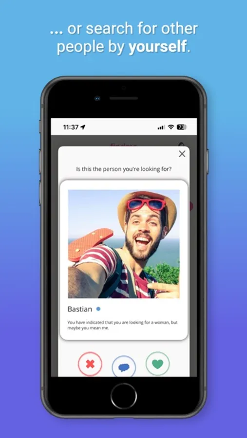 Using a location-based system, you can either check if someone is already looking for you, or create your own search for a specific person. Other users can then apply to your search, whereupon you can dig through all the applications until you find the person you've actually met in real life.