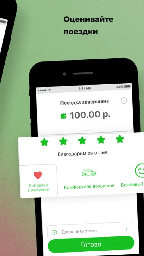 Поставьте оценку водителю, напишите отзыв или выберите реакцию из готовых шаблонов.