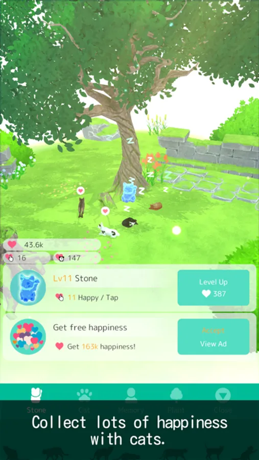 A very pleasant breeze carrying the scent of fresh greenery, somewhere in the distance you can hear the chirping of a skylark… Where could this be? In the pale sunlight filtering through the trees, the stone is fast asleep. From now on, you will touch the cat and its memories, and spend a gentle and enjoyable time.