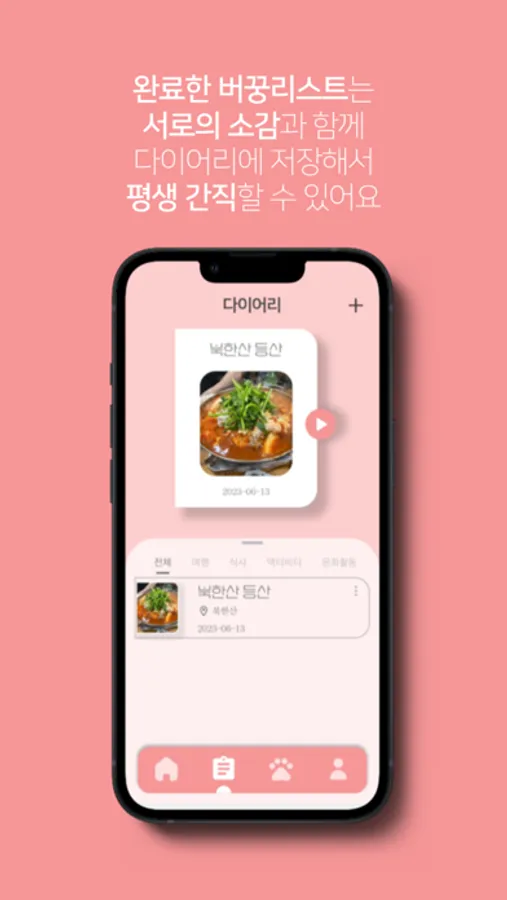 내 짝꿍과 함께 새로운 추억을 쌓고, 다이어리를 기록해보세요!