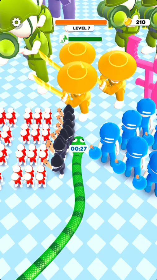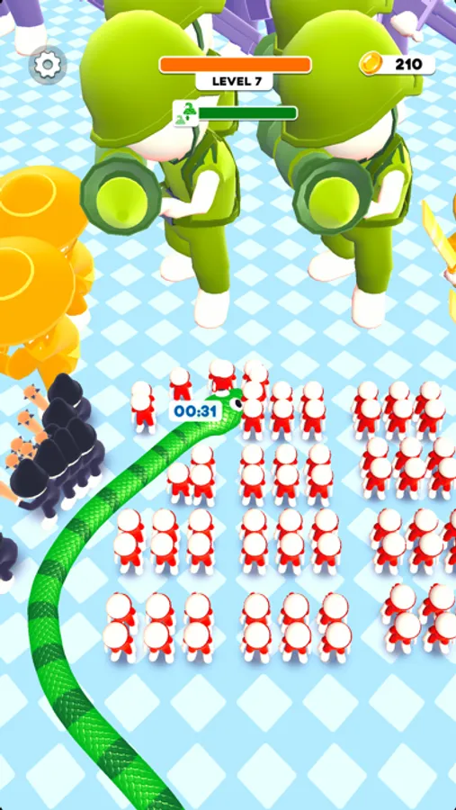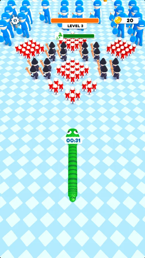 In Snake Strike, you'll take on the role of a powerful snake commander. Your mission? Surround and conquer as many stickman soldiers as you can within the time limit, and then unleash an explosive second sequence that will leave your enemies in awe!