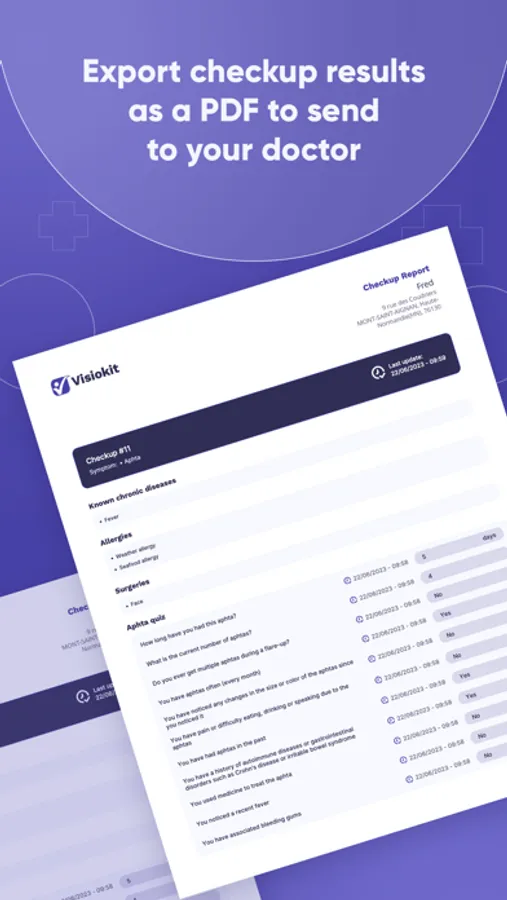 With Visiokit, prepare for your medical consultations by performing your own checkup. Visiokit guides you in the choice of the medical tests to be performed according to your symptoms. Your test results are compiled into a PDF that you can send to your doctor.