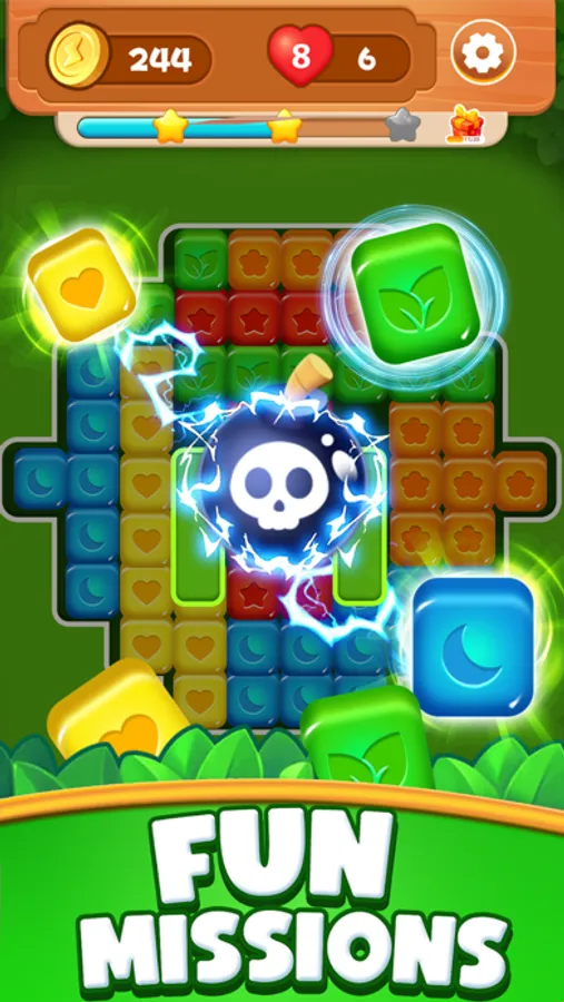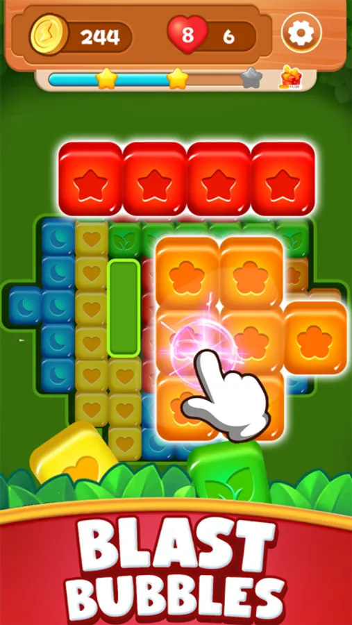 In BonBon Blast, your mission is to clear the board of color blocks by tapping groups of the same color to create a burst - a simple mechanic, yet intricately layered with strategic depth. The game goes beyond being a mere pastime, it's a strategic color-match challenge that ramps up in complexity with each new level!