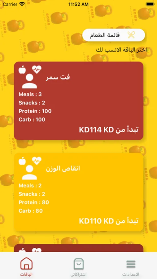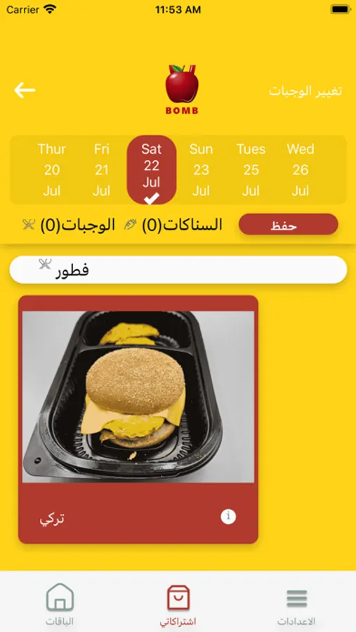 bomb resturant app It is an application that makes it easy for you to subscribe to a health plan, choose the number of meals and snacks that you need, the appropriate amount of protein and carbs, and place your notes for our restaurant, then easily choose your monthly meals from breakfast, lunch, dinner and snacks with ease from the application