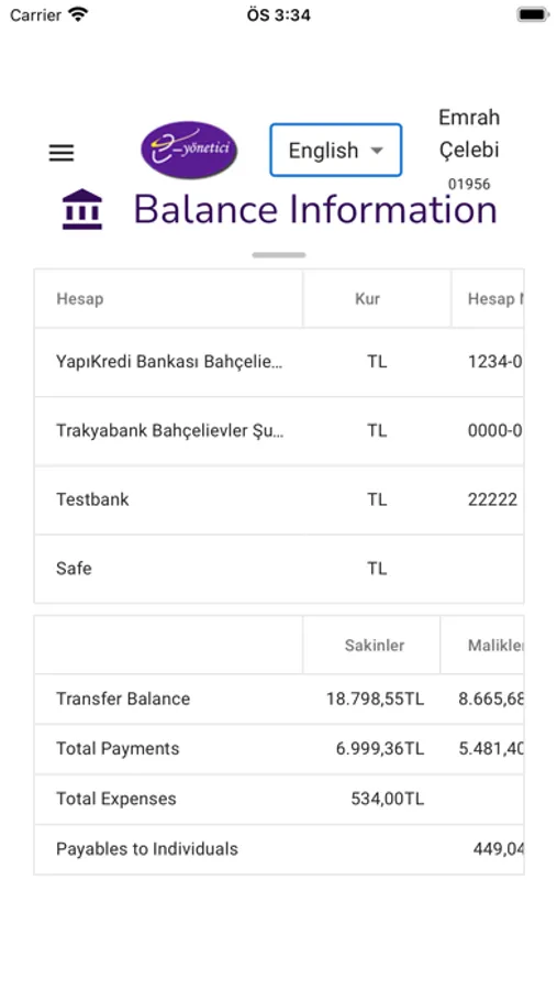 - Balance information
