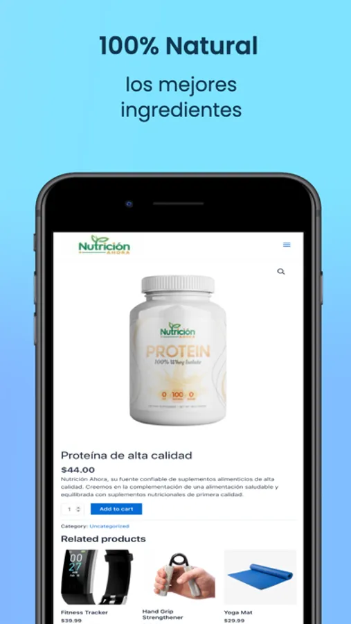"Nutrición Ahora" is your e-commerce platform for a healthier life. Explore 100% natural, sugar-free, fat-free protein products. Enjoy curated lifestyle content from relatable sources. Shop and view inspirational stories.