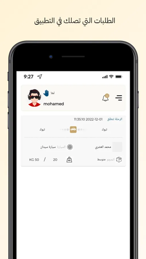 عندما يقوم الزبون بطلب منتجات أو طلب توصيل، يظهر الطلب على شاشة الكابتن.