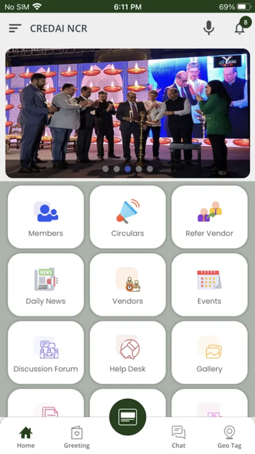 On Credai NCR App, registered user can directly login to their accounts and participate in all Group activities available on the platform. For people not Registered yet, they can register themselves and after proper verification and approval from the Admin, they can login like other regular users.