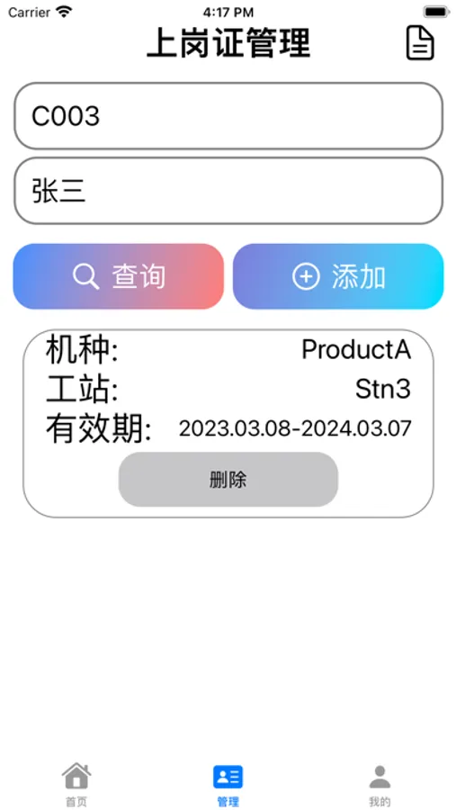 1.选择机种,线体后点击查询可查看该线体工站上岗信息总览。