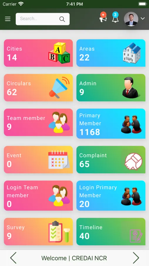 This app is used for Management (Admin) of any CREDAI NCR. Using this app you can now manage your association members from anywhere you are. Receive notifications on New members Join Request to your association, circulars, complaint and any important events booking, which would keep you updated on everything regarding your association.