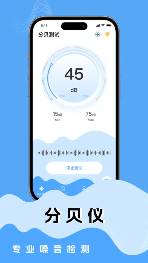 这是一款可以随身携带的噪音监测工具,通过手机麦克风对周围环境实时检测,并显示当前环境下的噪音分贝值,让你远离噪音干扰,保护听力!