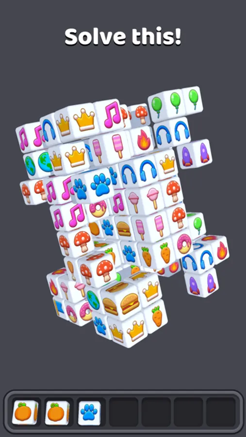 Swipe to rotate the 3D cube, find the matching tiles, and pop them all.