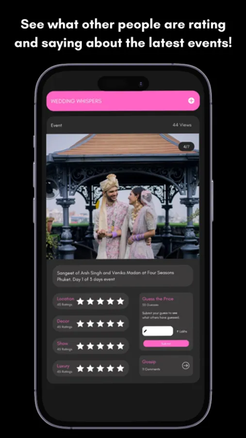 5. Photo Sharing: Showcase your own wedding experiences or stunning outfits and events you've attended. Get feedback and compliments from the Wedding Whispers community.