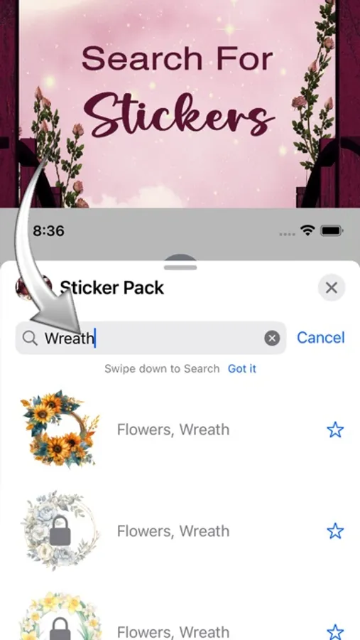 4. If the sticker has a lock symbol, click unlock and you can purchase with one simple in-app purchase.