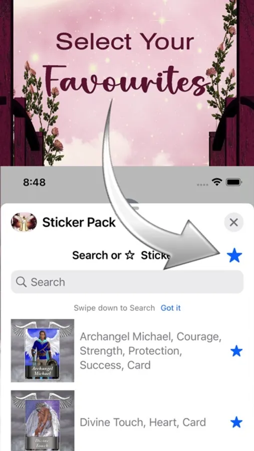 3. Tap the star to add a sticker to your favourites