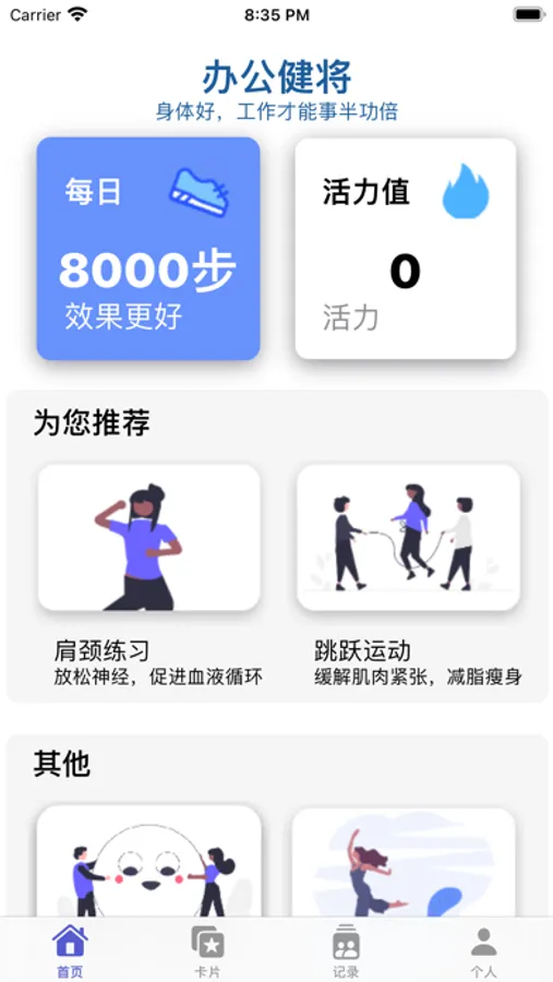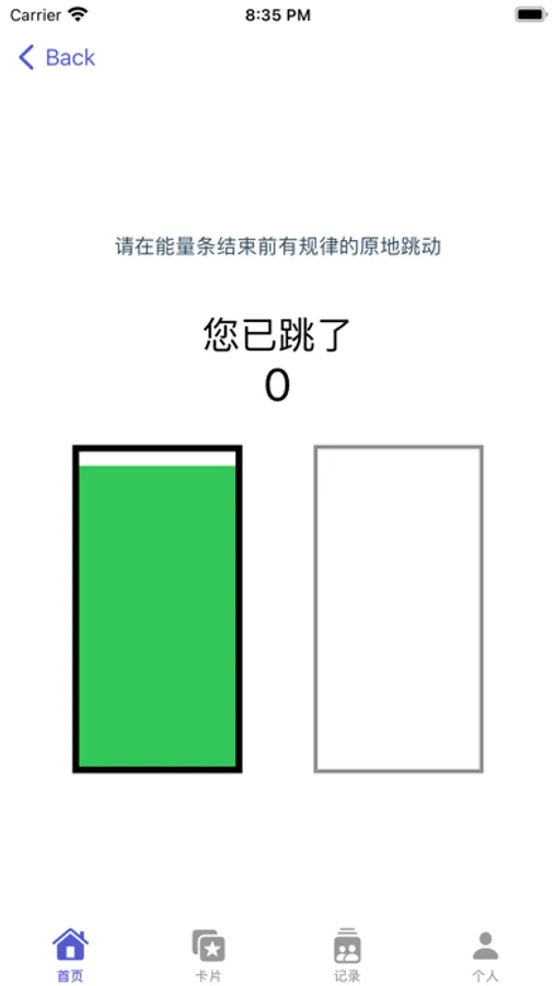跳跃运动模块:在规定时间内完成开合跳,绿色倒计时结束前让黄色跳跃条加满,每天进步一点点,健康多一点。