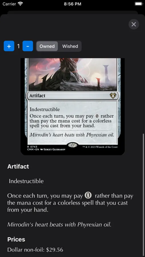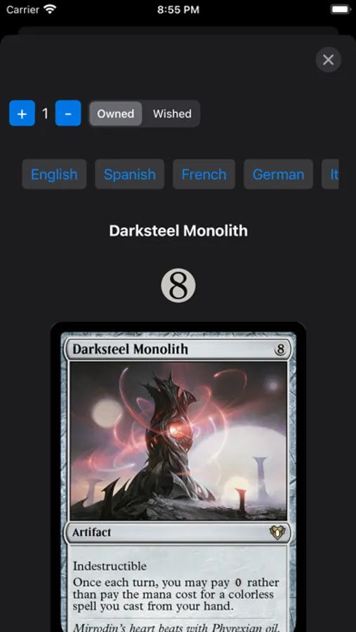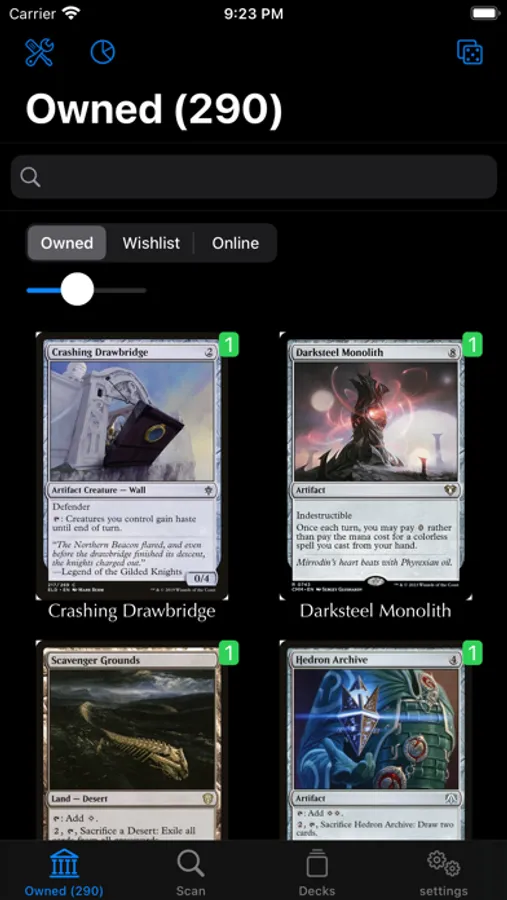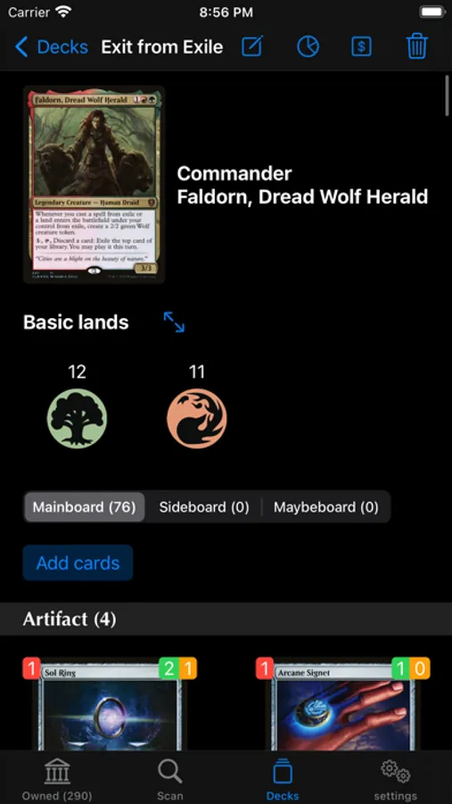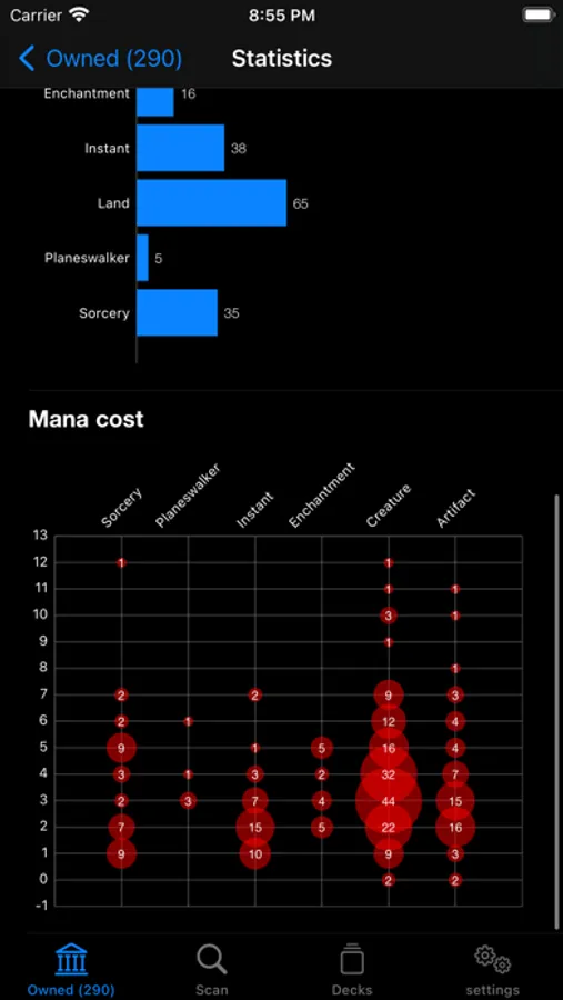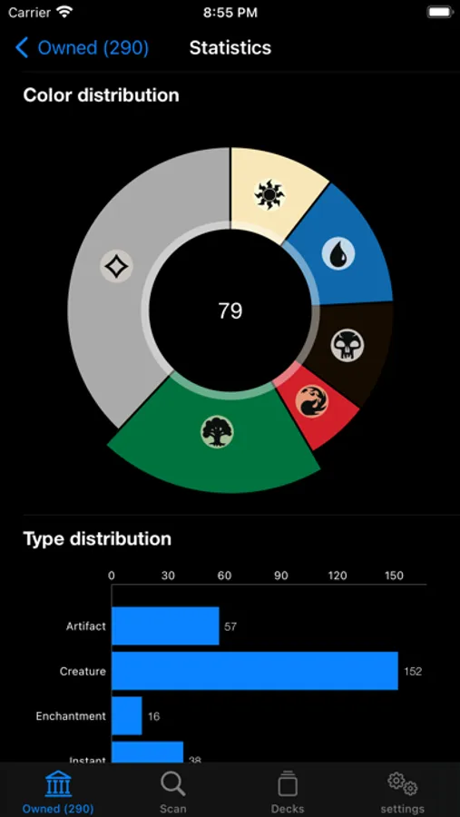 Get statistics on the group of cards you are viewing (library, wishlist, with or without filters, deck)