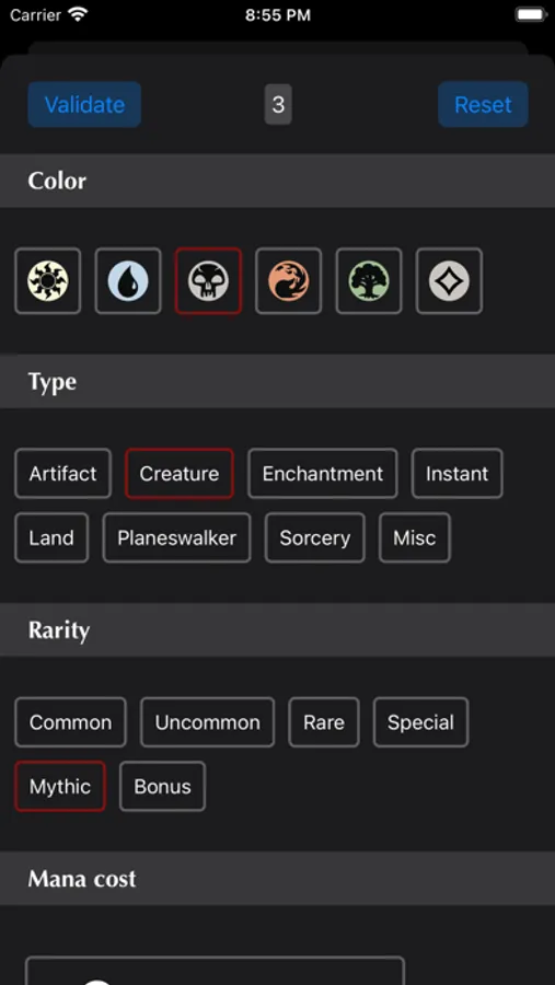 Use many filters to search for cards in your library and online. But also, with or without filters, let the app show you random cards!