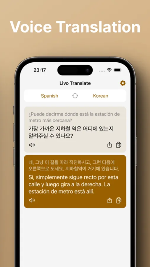 Voice Translation: Just speak what you want to express, and let AI do the translation for you.