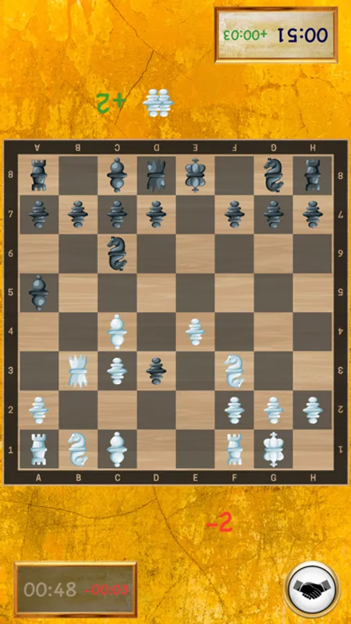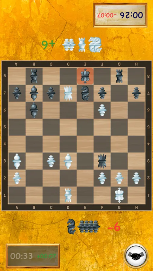 -Integrated chess clock (1 minute, more intervals (3,5,10,15,20,30,60,90) as in-app purchase) with Bronstein mode and Fischer mode